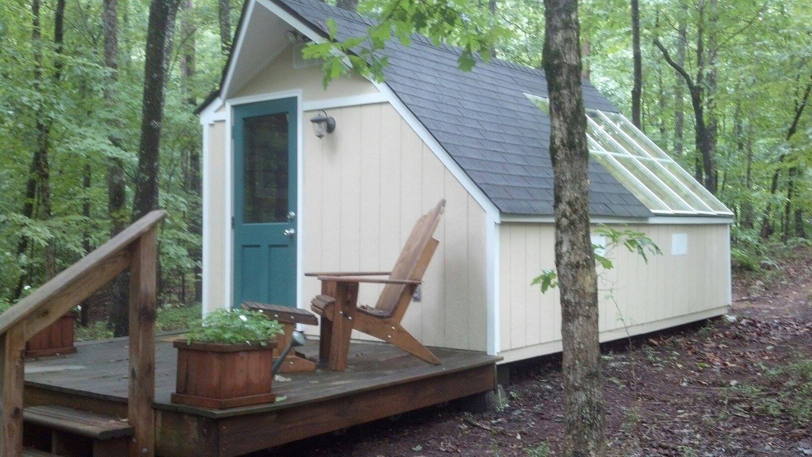 So, in January 2008, I bought a 10’ x 12’ prefab greenhouse from Lowe’s to use as my primary office on our wooded Clarkesville property. It was one of the best purchases I’ve ever made.