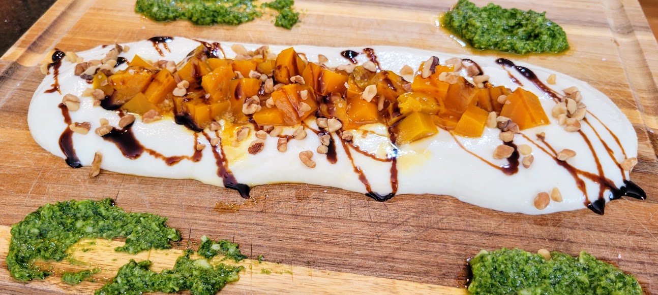 He’s all about using local ingredients and what’s on hand, though he’s not averse to driving to several local markets for pine nuts when he needs them.