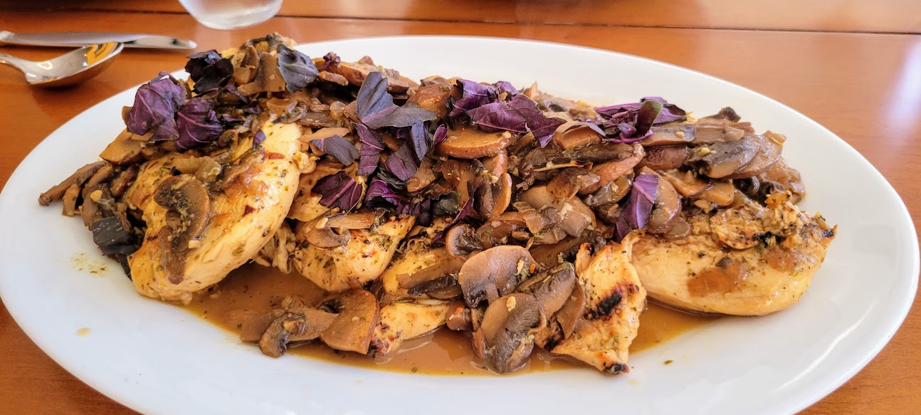 This past weekend’s visit began with chicken marsala (he kindly grilled the chicken in consideration of Ted’s and my Noom weight loss program).