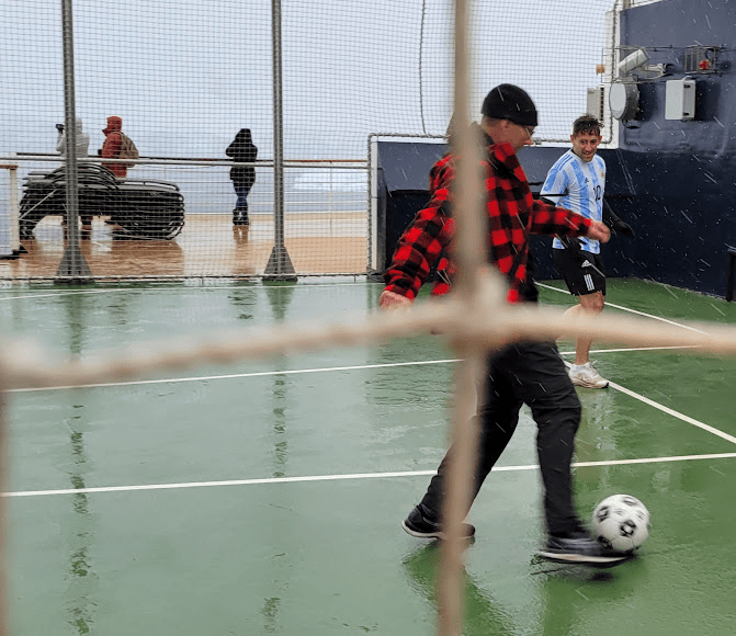 We did stop to see our Argentine cruise director don his jersey and play a little soccer in the snow on the ship’s netted-over sports court. It’s his tradition every time he works an Antarctic cruise. He was a delight, as were all the crew on the Celebrity ship.