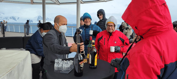 Hot chocolate with liquor shots kept the cold at bay. After a while, the ship’s atmosphere changed from hushed awe to something like New Year’s Eve. We were in Antarctica! Let’s party!