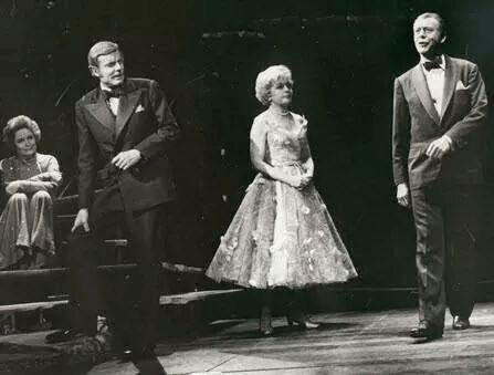 Through the wonders of youtube and new editing technology, however, some stalwart soul has taken the original recording and edited in the missing middle section from a very good live performance by Dorothy Collins, who played the lovelorn Sally Durant Plummer in the original Broadway production. (The principals in that production are shown below.)