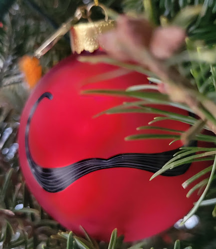 Salvador Dali’s mustache slyly peeks through the branches from this ornament we bought when we toured the Dali museum with friends in St. Petersburg, Florida, also in 2017. We covered a lot of ground that year!