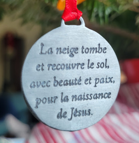 And finally, an ornament we bought when we visited our friend Jean-Francois Gilbert at his home in Montreal in 2017. On a bitterly cold winter day, we found it in the cozy gift shop of Montreal’s stunning Notre-Dame Basilica.