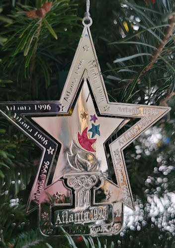 First, an ornament commemorating a golden time nearly 30 years ago not long after Ted and I moved to Atlanta from Nashville–the 1996 Olympics. We had so much company over those two weeks! We loved it.