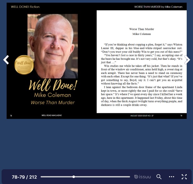 One of my short stories is featured in this month’s issue of the online WELL READ Magazine. Thank you, editor Mandy Haynes, for including me!