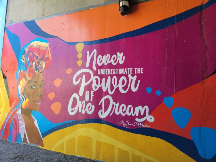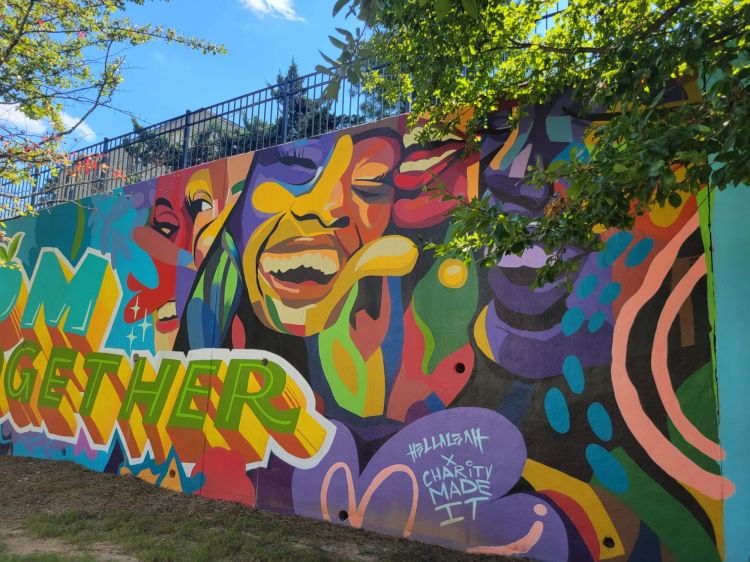 Enjoy the video. And the photos below of the inclusively celebratory murals along the walking trails in our community of Chamblee. I especially like the way they even make the underbelly of one of the busiest overpasses in Atlanta attractive.